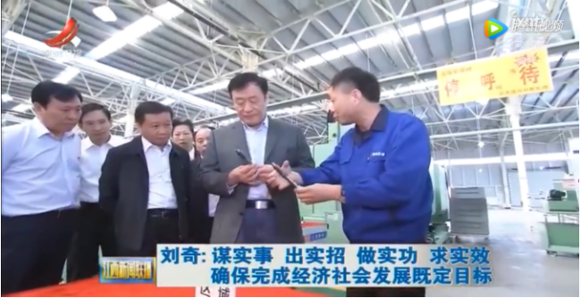 On the morning of October 12, 2018, provincial party secretary liu qi, accompanied by xiao yi, vice chairman of the provincial committee of the Chinese people's political consultative conference and party secretary of fuzhou, went deep into jiangxi rongcheng machinery company for investigation and research. The picture shows the general manager tu rongshan reporting.